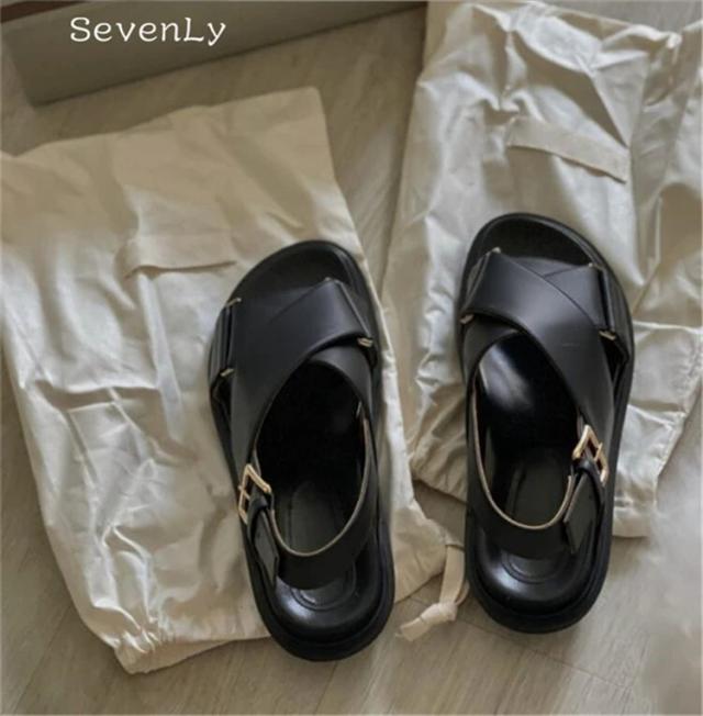 店長推薦 トレンド 厚底 真皮サンダル 夏 デザインセンス カップル 足が小さい オープントゥ 男女兼用 平底 ローマサンダル 歩きやすいの通販は