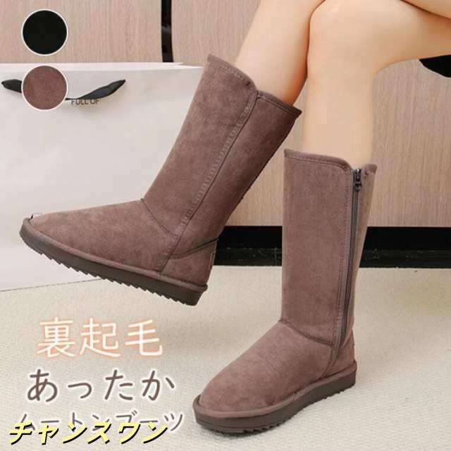ムートンブーツ 大きいサイズ レディース ロングブーツ 防寒 保温 フラットヒールロングブーツ ローヒール 痛くない 歩きやすい ファーブの通販は